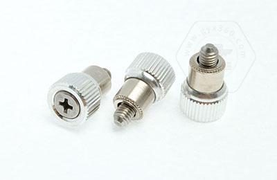 手緊螺釘?shù)膲恒T套具有壓花齒,壓裝于于機(jī)箱或薄鈑孔內(nèi)(:薄板的鉆孔徑相對(duì)應(yīng)彈簧螺釘?shù)膲糊X徑有一定要求的,形成一個(gè)外露的彈簧螺釘,用手?jǐn)Q另一端(即手?jǐn)Q端).因其里面固定有彈簧,螺釘相對(duì)于薄板的另一端來(lái)回進(jìn)出。
